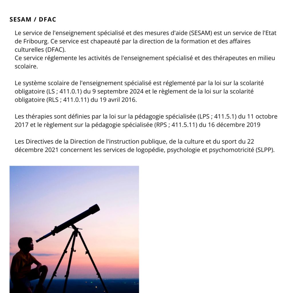 Liens utiles Site internet du SESAM Site internet de la DFAC Loi scolaire Loi sur la pédagogie spécialisée